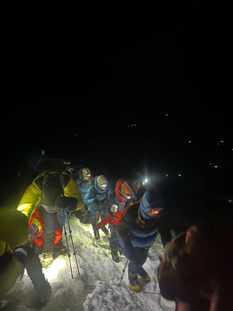 Сначала нас заселили на высоту 2000 м, там несколько дней проходили адаптацию, потом перевезли на 3800 м, где также было 3 дня адаптации, акклиматизации. Делали радиальные выходы. И вот первого числа в ночь у нас состоялся выход на самую высокую точку Европы. 5642 м.