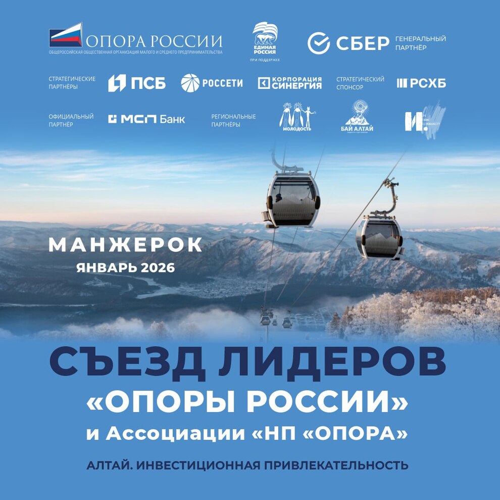 Первый в 2026 году Съезд лидеров «ОПОРЫ РОССИИ» и Ассоциации «НП «ОПОРА» состоится в Республике Алтай с 25 по 27 января.